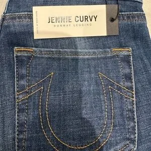 The Jennie Curvy Jean is a popular fit for a reason! This pair of curvy jeans features a gap-proof mid-rise waist, zip fly, whiskering, medium wash, and Big T stitching. Finished with stretch fabrication and horseshoe detailing on the back flap pockets.