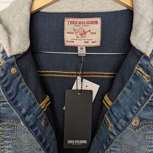BNWT True Religion UNISEX Adult (Large) Relaxed Denim Trucker Hooded Jean Jacket