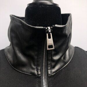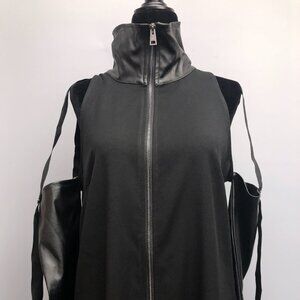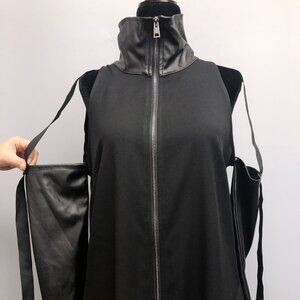 Cool Goth designer Dress that can be worn open as a vest for a cool factor and 2 in 1 design. Asymmetrical, flared dress with double zipper and detachable sleeves in ecological leather