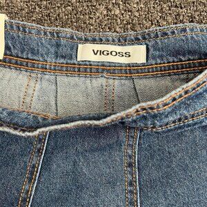 BNWT Vigoss 100% cotton blue denim Y2K pleated mini skirt