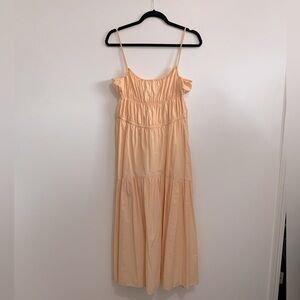 A Elevate your style with this Vince cream midi dress. Perfect for any occasion, this dress offers a blend of elegance and comfort.