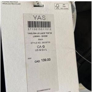 BNWT YAS Black Lace Blouse Size Large