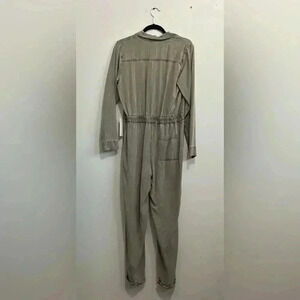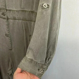 - button up jumpsuit, 2 pockets front, 1 pocket at back