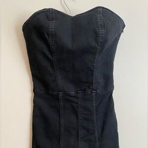 BNWT ZARA Denim Pants Jumpsuit Black with Sweetheart Top Size Small