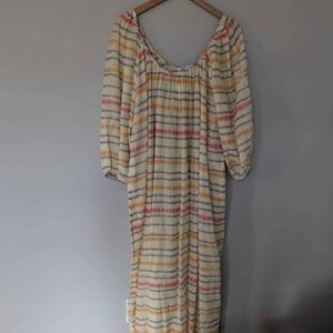 ZARA Multi Color Stripe Puff Sleeve Boho Maxi Dress -size s