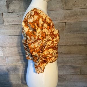 BNWT Zara women’s orange yellow boho floral cropped puffed sleeves
