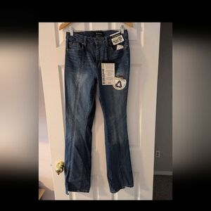 Join the recycle revolution with these recycled denim high waist, skinny bootcut, front slit jeans. Stylish and eco-friendly.