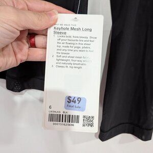 BNWT lululemon Keyhole Mesh Long Sleeve Top Black Size 6