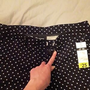 Brand new with tags navy/black ( it's very hard to tell) patterned dress style pant with stretch. Faux back pockets and real front pockets. Super cute and comfy pants!