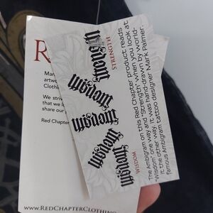 wording in middle says wisdom one way, and strength opposite way. cool shirts 100% cotton