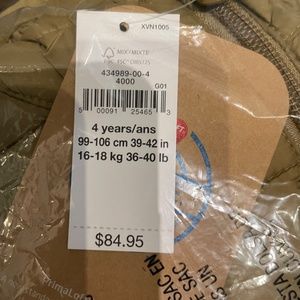 Brand new Gap Primaloft lightweight puffer jacket for toddler kids. This jacket is so cute with a dinosaur hood. It has dinosaur spikes on the hood. Colour is tan.