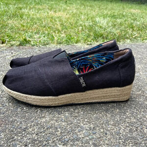 BOBS Skechers Women's Black Espadrilles Wedges Memory Foam Arch Pillow Sz 8.5