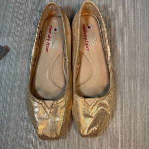 Who said being glamorous couldn't be comfortable? Lounge in style in these gold soft cushioned soled slip ons!