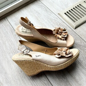 BOC Born Concept Blossom Espadrilles Leather Wedge Heels Sandals in Champagne