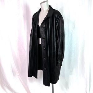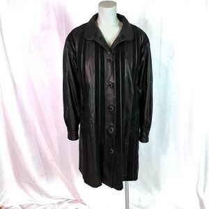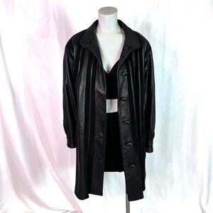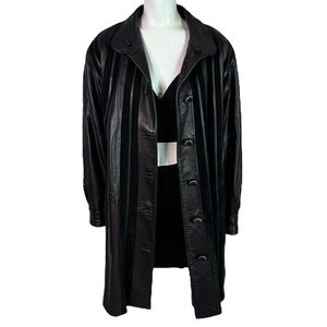 BOD & CHRISTENSEN BLACK LAMBSKIN TRENCH COAT MID LENGTH VINTAGE LEATHER COAT