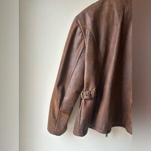Structured leather jacket with buckles on the side