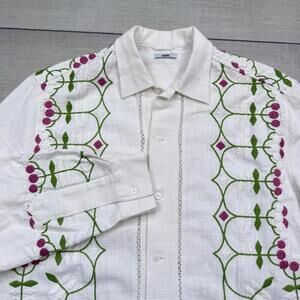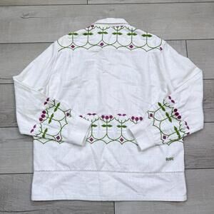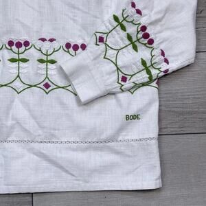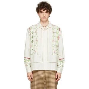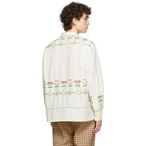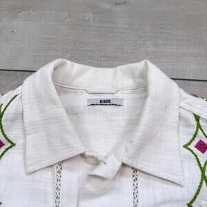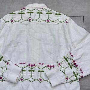 BODE Mens White Embroidered Nouveau Fleur Shirt Size L/XL plain-woven linen Boho