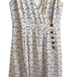 In excellent condition. Boden Arwen linen / cotton blend mid dress. Days getting warmer? This lightweight, cotton-linen dress will keep you cool from commute to café catch-ups. A V-neck and flattering waist panels make it feminine, with side-button detailing adding a stylish twist. In a cream colour with a fun sunshine print throughout. Flat lay measurements: 21.5" pit to pit, 48" length