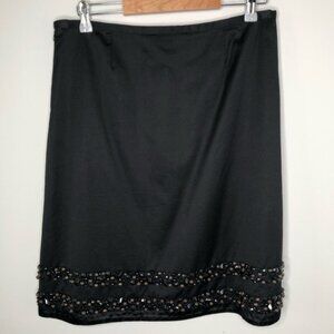 Boden Black Wooden Beaded Trim Knee Length Skirt Size 14R