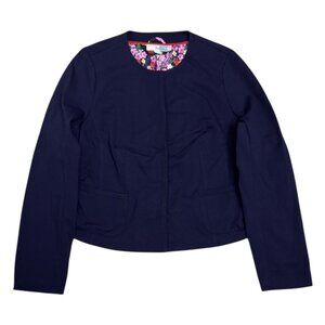 BODEN Floral Lined Business Casual Navy Blue Blazer Jacket Womens 16R