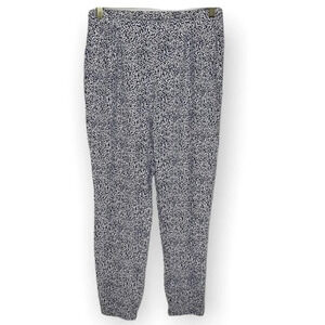 Ladies navy and white fun print Boden baggy mid rise cinched ankle pants.