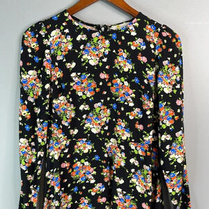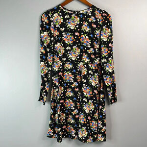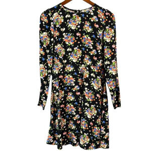 Women’s black Boden “Wild Cluster” Floral Print Crew Neck Fit and Flare Dress.