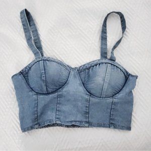 BOG COLLECTIVE Denim Bustier Padded Crop Top