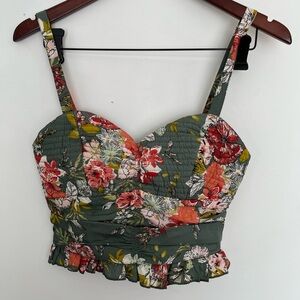 This stylish floral green top is perfect for any occasion. Its vibrant design adds a touch of summer vibes to your wardrobe. Size large EUC