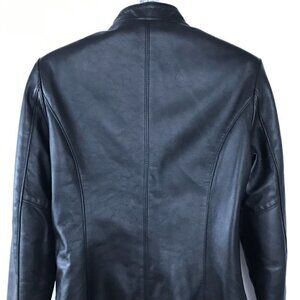 BOGATO, women's black leather jacket, fitted moto jacket, no size tags small/med
