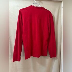 Men’s Red long-sleeve shirt. Size small. Armani Exchange branding on the sleeve and neckline that hides a zipper.