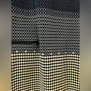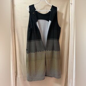 Black and yellow polka dot sleeveless dress. Size 18. Features a gradient pattern, lightweight fabric and faux pockets. Back zipper closure.