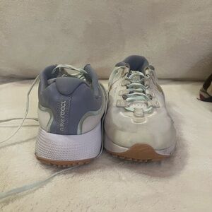 Very gently worn, light coloured Nike women’s running shoes in size 8.5