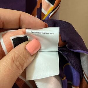 This stylish Nine West sleeveless top features a vibrant chevron pattern in purple, orange, and brown. Perfect for adding a pop of color to your wardrobe.