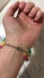 Tatted anklet (or bracelet) Pansexual pride flag colours with tiny blue beads.