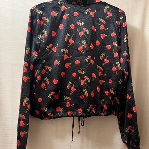 ⚫️ BOGO Revamped Black and Red Floral Blouse Cropped Long Sleeve Size XS
