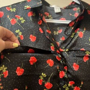 ⚫️ BOGO Revamped Black and Red Floral Blouse Cropped Long Sleeve Size XS