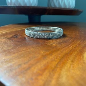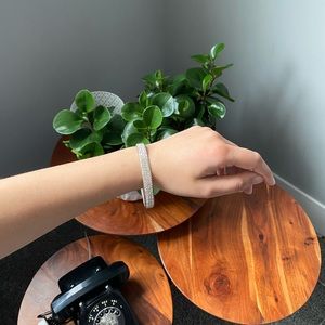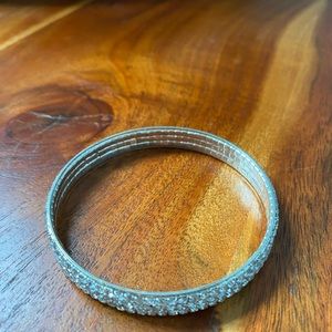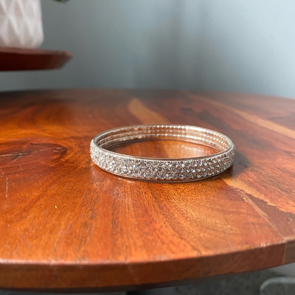 Silver rhinestone bangle by Le Chateau. Excellent used condition. Only worn once. All stones are intact!