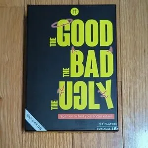 NWOT. open box. Explore social values with 'The Good The Bad The Ugly' card game by . Featuring a sleek black design with vibrant yellow text, this game is perfect for 2+ players aged 16 and up.