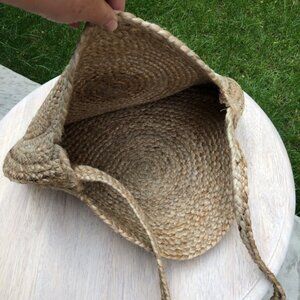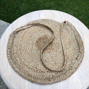 This beautiful and stylish Braided Jute Tote Bag is perfect for every occasion! Holds everything you need; Handy Cross-Body Handle makes it easy to be hands-free while running errands. Plus, its feminine bohemian style is sure to attract many compliments. Take it to the beach, you'll see for yourself! In excellent like new condition. Measures 17” Diameter.
