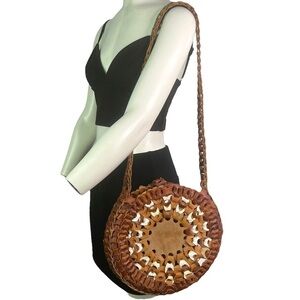 Keywords: Boho, Brown Shoulder Bag, Leather, Braided, Artisanal, Women, Round Shape, Handmade, Mark Pen, Photo Gallery, Gorgeous Condition, Thick Leather
