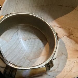 CAMEL BONE WITH BRASS INLAY DETAIL ON SOME SECTIONS