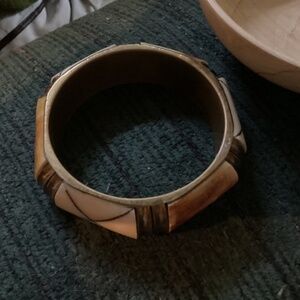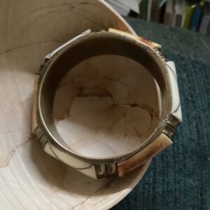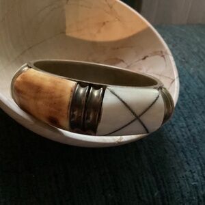 BOHO STYLE, VINTAGE CAMEL BONE & BRASS INLAY BRACELET