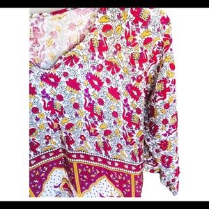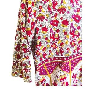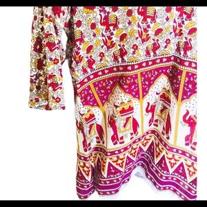 BOHO Vintage Floral Elephant TUNIC/TOP With 3/4 Length Sleeves Red/Purple Small