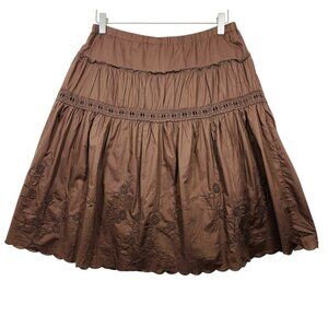 BOHO flared embraided chocolate brown skirt size 8 NAVADA