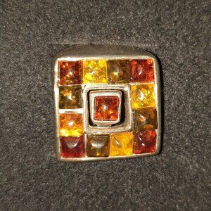 It is a vintage heavy sterling silver Mosaic Baltic Amber Cocktail Ring Size 6 in excellent condition. This unique mosaic amber ring with a square shape makes an ideal Holiday Gift for Her!