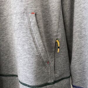Hoodie is missing drawstring at hood and has faint marks near the hem as seen in last photo. Very minor and not obvious. In great condition otherwise. Freshly washed and ready to wear!