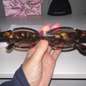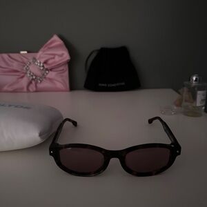 Oval semi-transparent tortoiseshell acetate-frame sunglasses.