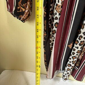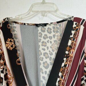 BOOHOO Faux Wrap Chain Mixed Print Dress Midi Lightweight V Neck Graphic