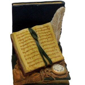 Each bookend features a unique design with intricate timepieces and classic book motifs, perfect for bibliophiles and collectors who appreciate the finer details of decor.