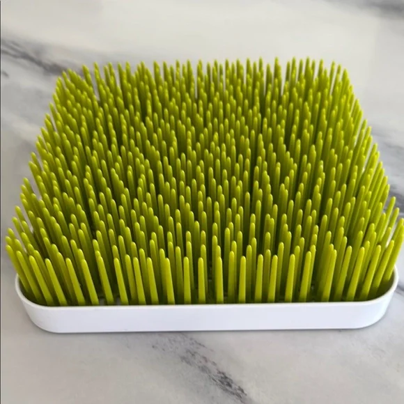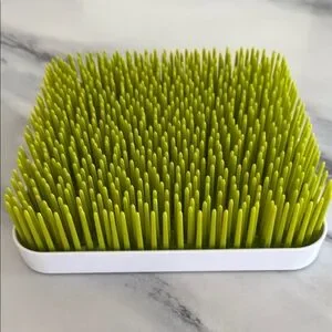 DRYING RACK: A grass style countertop drying rack which holds any size and shape items, also includes a water tray which collects the water underneath